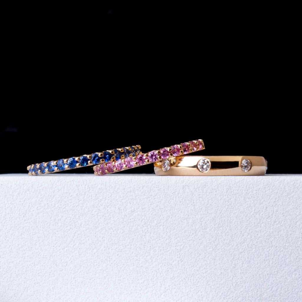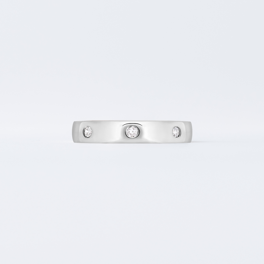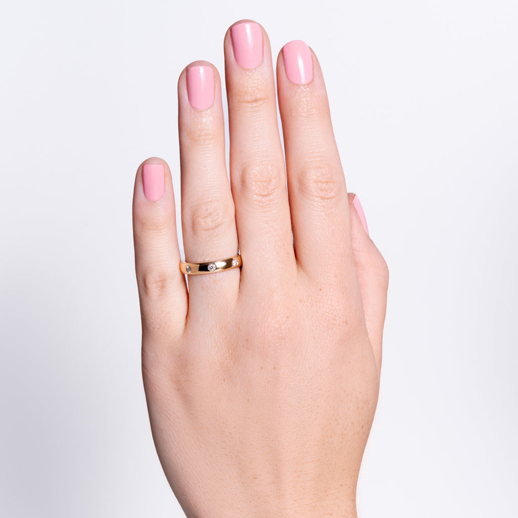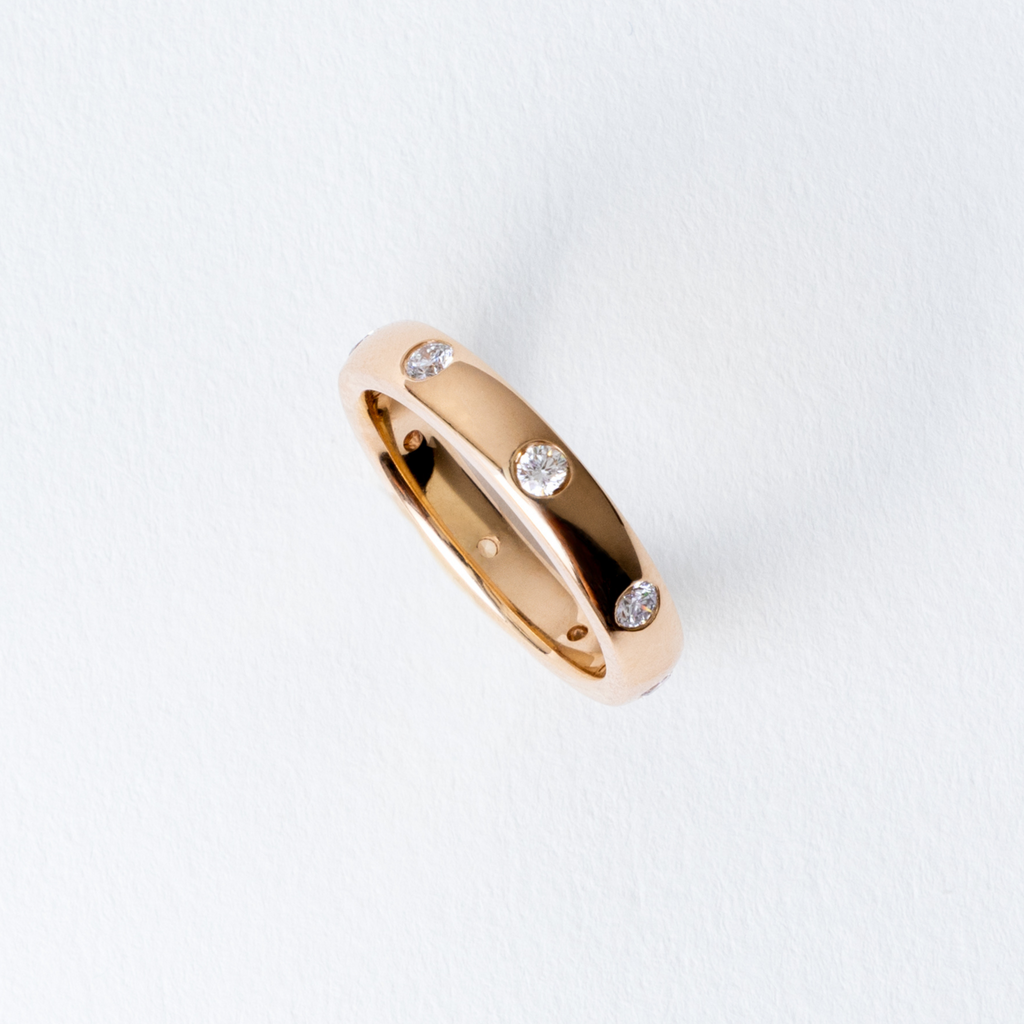 This ring is a beautiful & contemporary diamond band. It is embedded with diamonds for an understated, yet elegant style. It can be styled on its own, stacked with other rings, or worn as a wedding band.