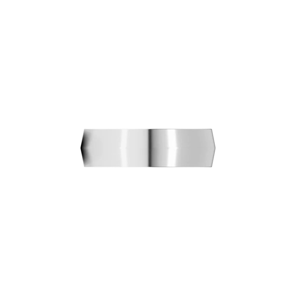 The Knife Edge Band is a modern take on a classic gold ring. The design has two flat edges that meet at a peak in the center, resembling a mountain ridge or two parts coming together. It is great as a wedding band or a geometric gold ring.