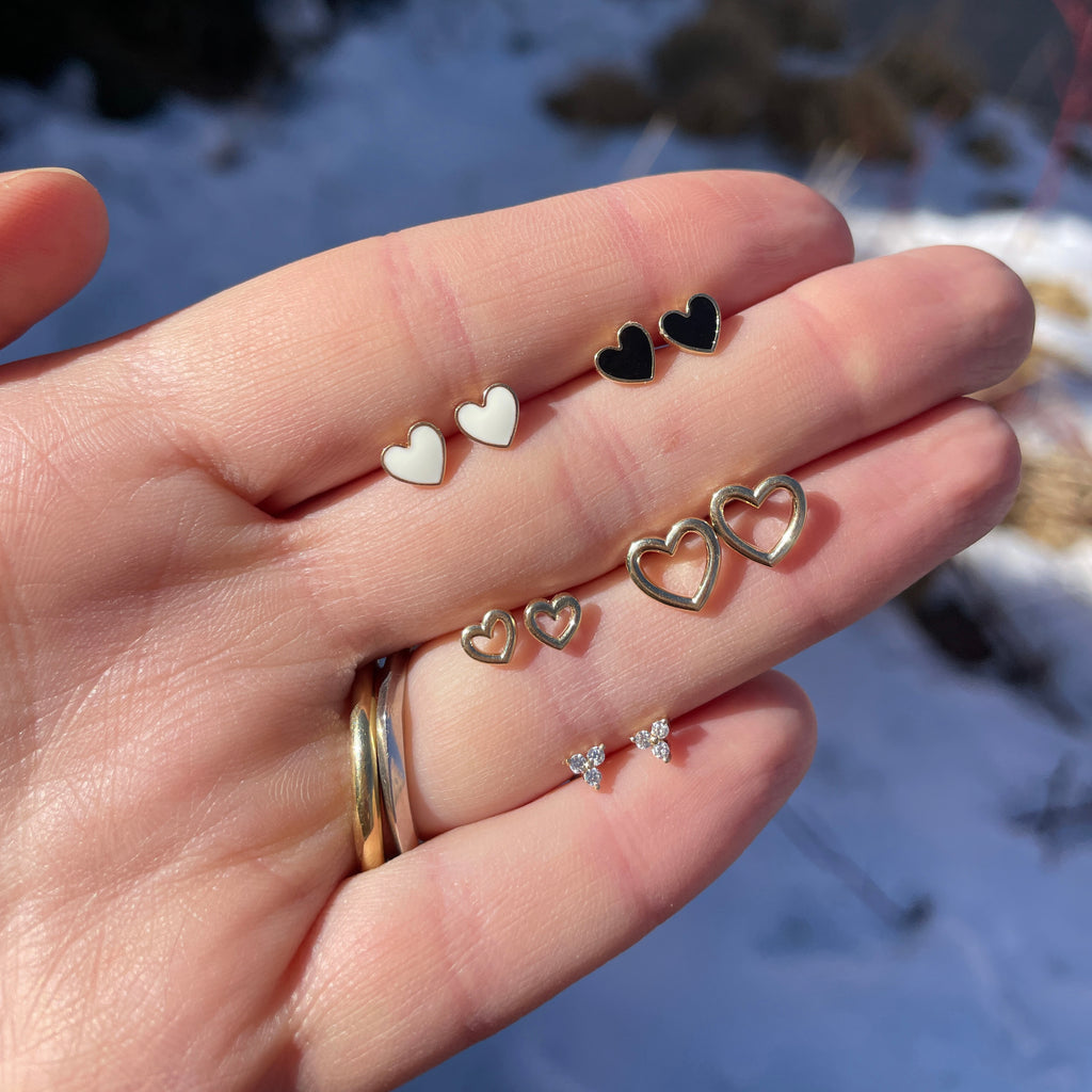 Show a little love with the Love Studs in White Enamel. The light enamel center with a shining gold border creates an elegant style.