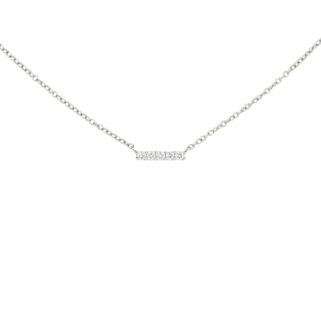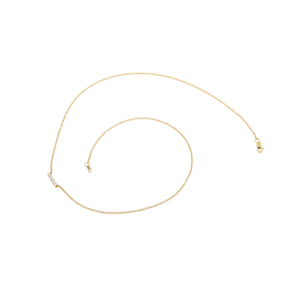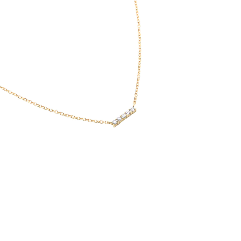 This necklace has a line of five diamonds shining in the center of a solid 14k gold chain. Whether you wear it on its own or stacked with more necklaces, you will love the touch of elegance this style will add to your everyday style.