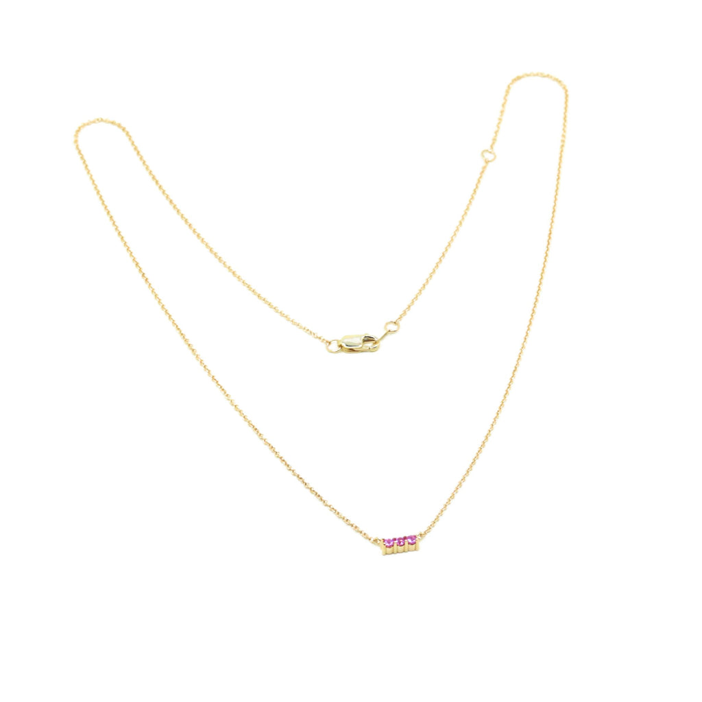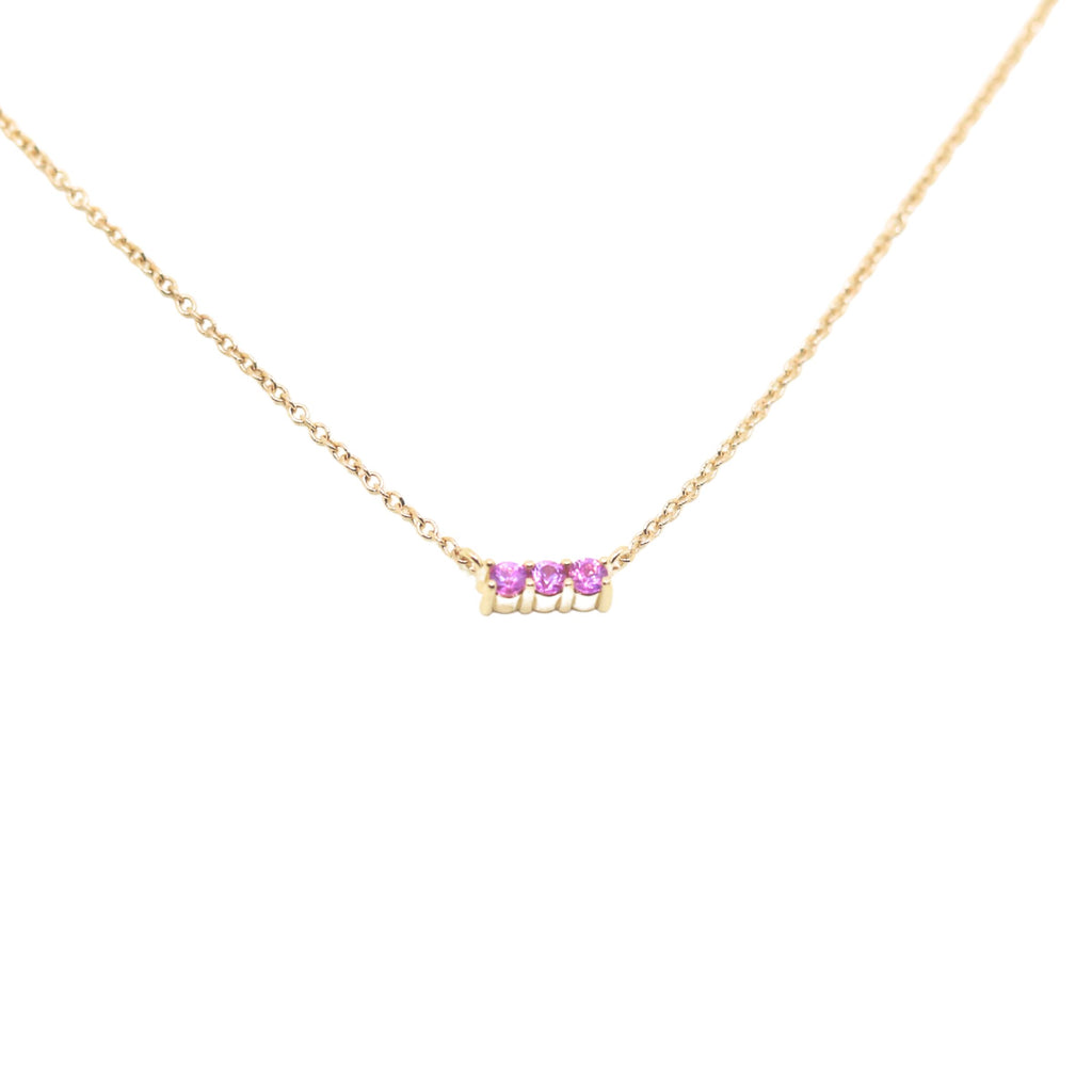 This necklace has a trio of pink diamonds shining in the center of a solid 14k gold chain. Whether you wear it on its own or stacked with more necklaces, you will love the touch of color this style will add to your everyday style.