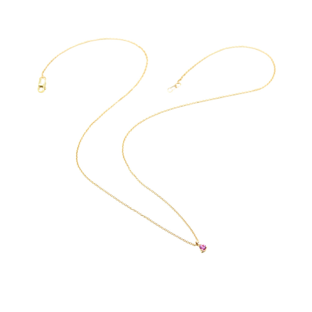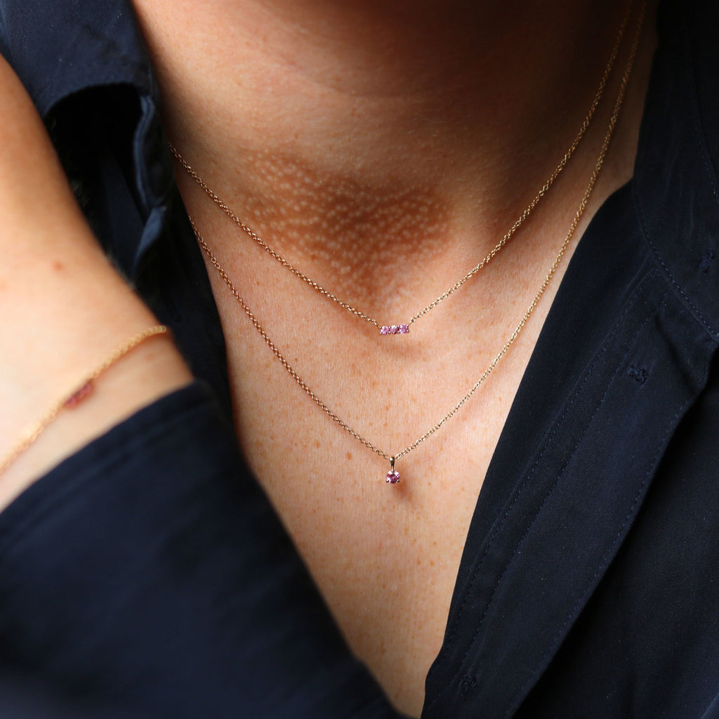 This solitaire necklace features a beautiful pink sapphire along a delicate solid 14k gold chain. Whether you wear it on its own or stacked with more necklaces, you will love the touch of color this style will add to your everyday style.