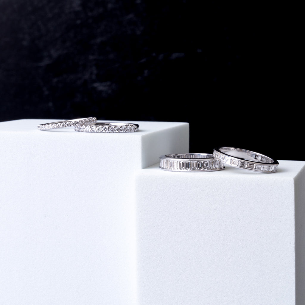 Diamonds - 3x2mm baguette diamonds, 2.4ct total carat weight (full band). Select Lab Origin (F Color, VS Clarity) or Natural Origin (H Color, VS Clarity).