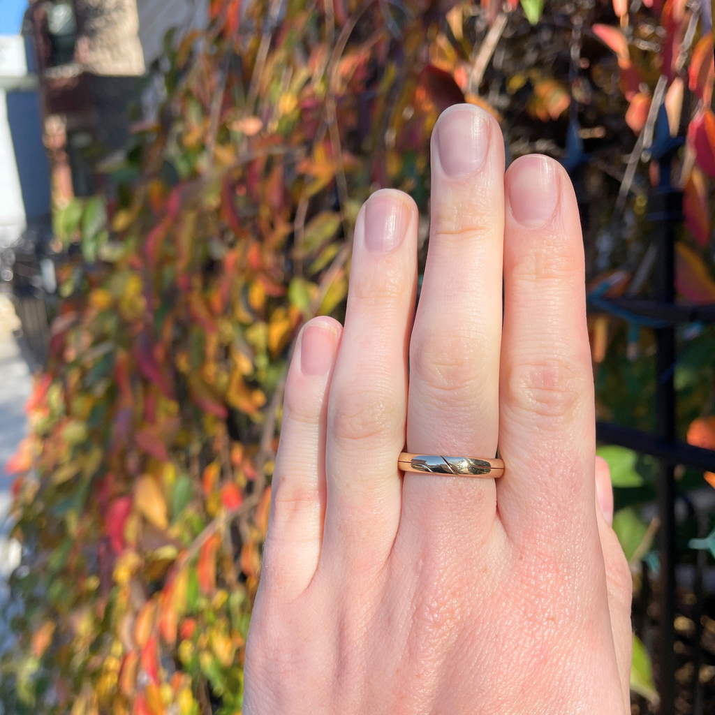 The Ma Moitié Ring is a beautiful design with historic origins. This style of ring is known as a gimmel ring. It was an early version of the engagement ring, dating back to 16th century France. The ring is made of two bands that perfectly fit together to become one. The design symbolizes two separate lives coming together to make one strong and cohesive whole. The interior of the bands can be engraved with names, sayings and dates. This antique design is rarely made by fine jewelers today.