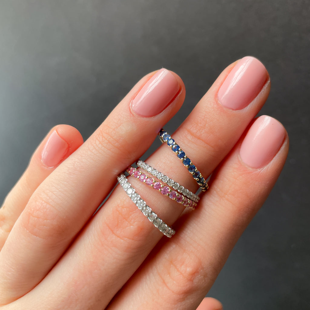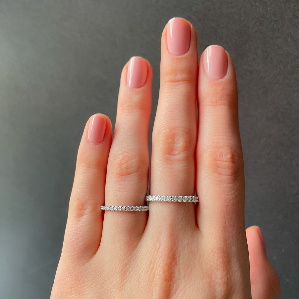 Diamonds - 1.5mm round diamonds, ~0.5 total carat weight (full band). Select Lab Origin (F Color, VS Clarity) or Natural Origin (G Color, VS Clarity).